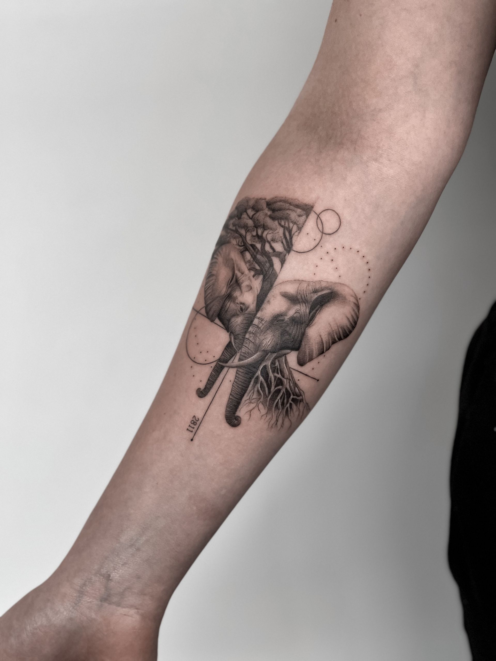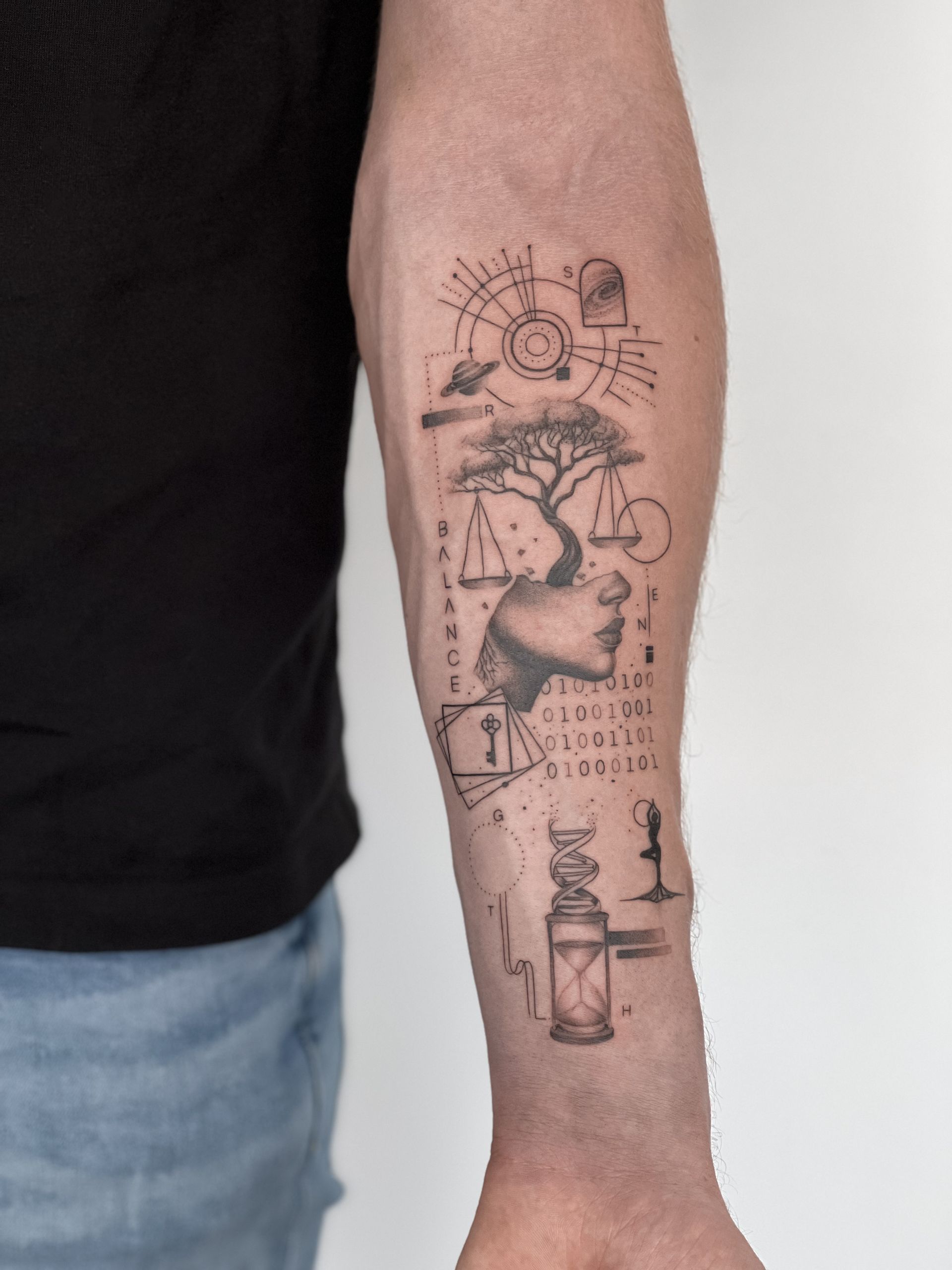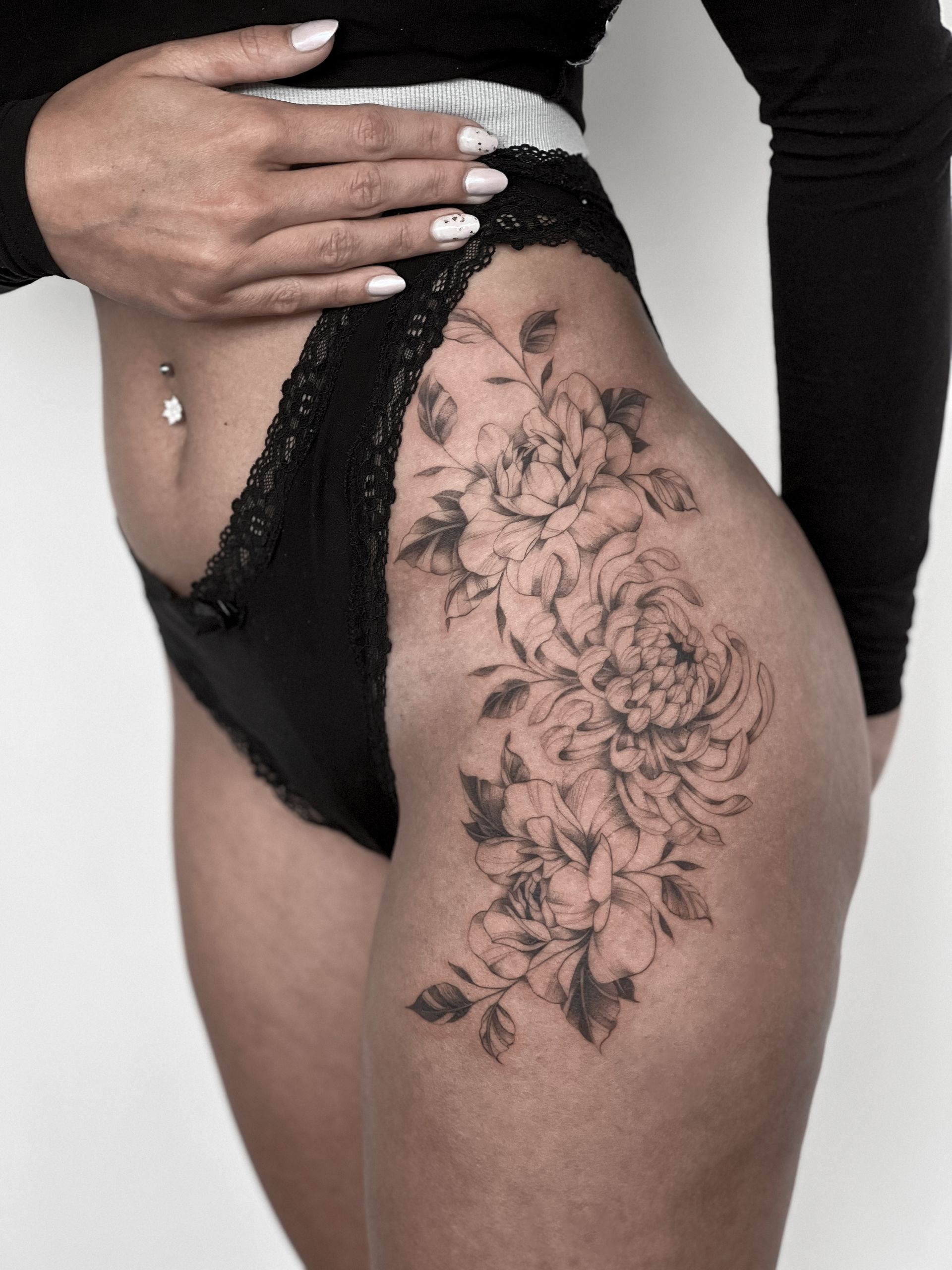 Anschließend wird ein Design entworfen und das Motiv unter die Haut gebracht. Ich liebe es mich kreativ ausleben zu dürfen und freue mich über Tattoowünsche, die mir einen künstlerischen Freiraum bieten. Die Anliegen meiner Kundinnen und Kunden nehme ich mir sehr zu Herzen und bemühe mich, diese bestmöglich umzusetzen. Da ich selbstverständlich die Arbeiten anderer respektiere und außerdem ein individuelles Tattoo bieten möchte, kopiere ich keine Vorlagen mehr.