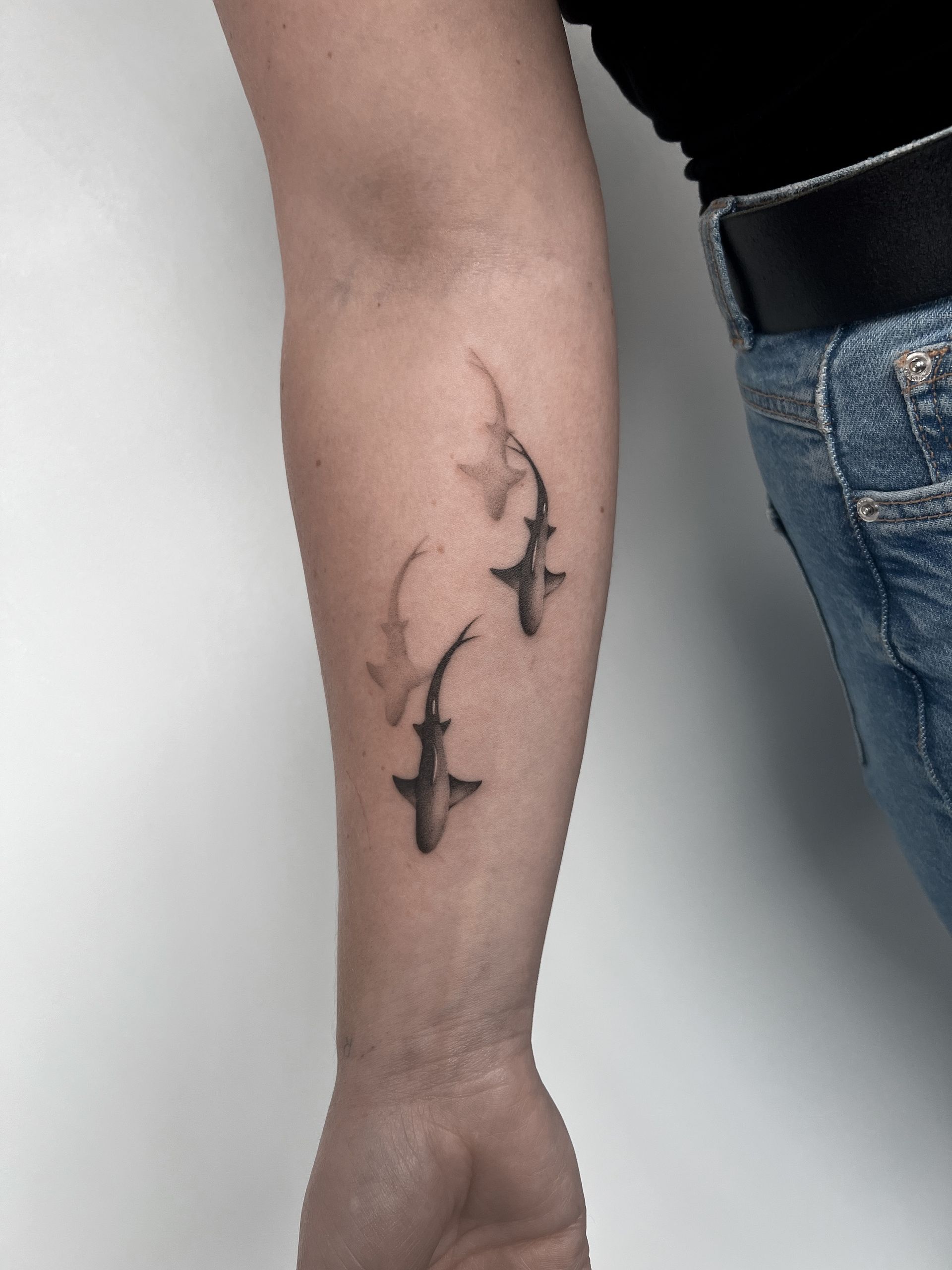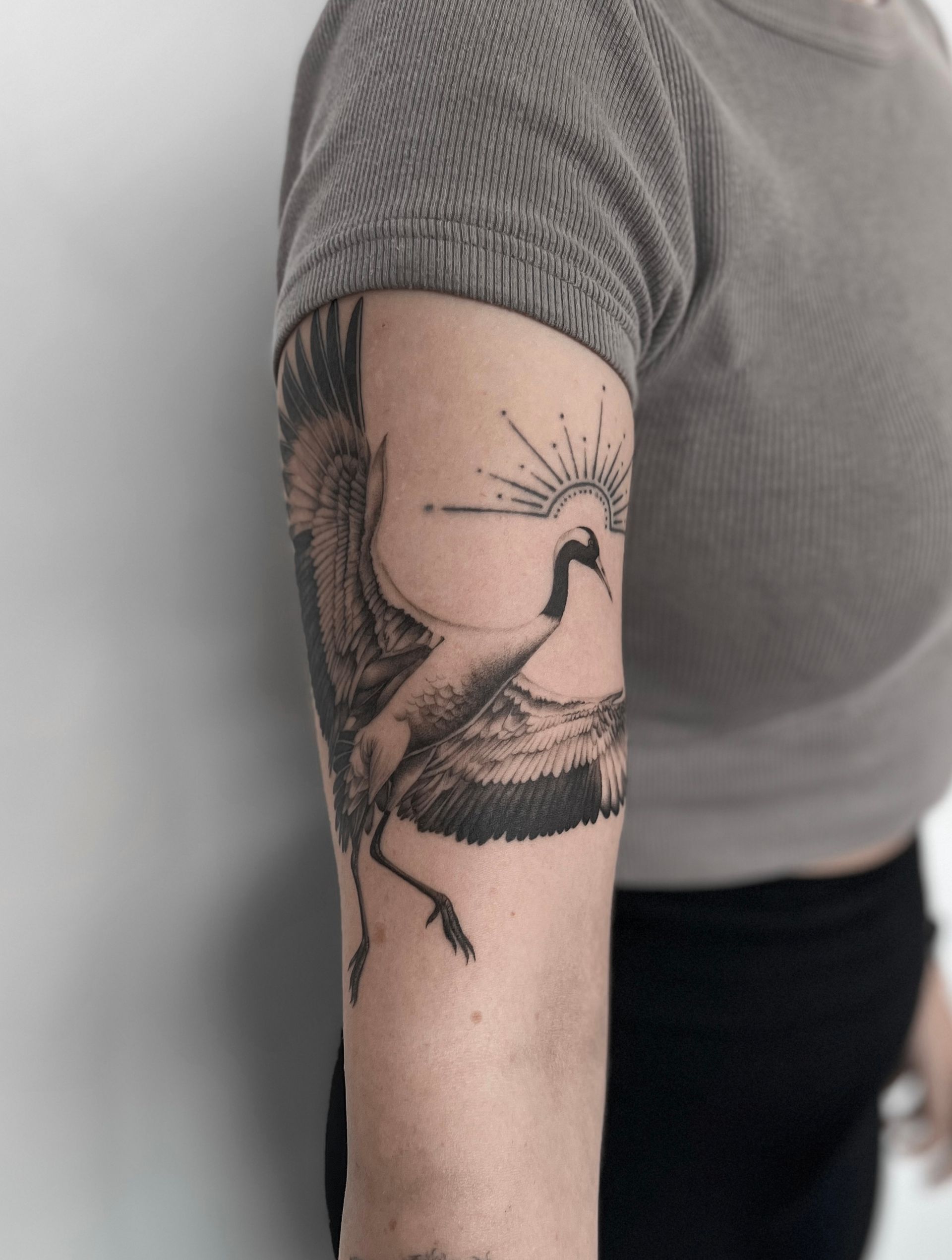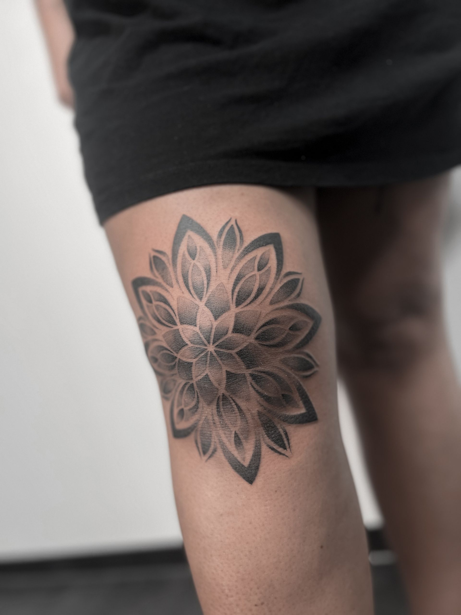 Anschließend wird ein Design entworfen und das Motiv unter die Haut gebracht. Ich liebe es mich kreativ ausleben zu dürfen und freue mich über Tattoowünsche, die mir einen künstlerischen Freiraum bieten. Die Anliegen meiner Kundinnen und Kunden nehme ich mir sehr zu Herzen und bemühe mich, diese bestmöglich umzusetzen. Da ich selbstverständlich die Arbeiten anderer respektiere und außerdem ein individuelles Tattoo bieten möchte, kopiere ich keine Vorlagen mehr.