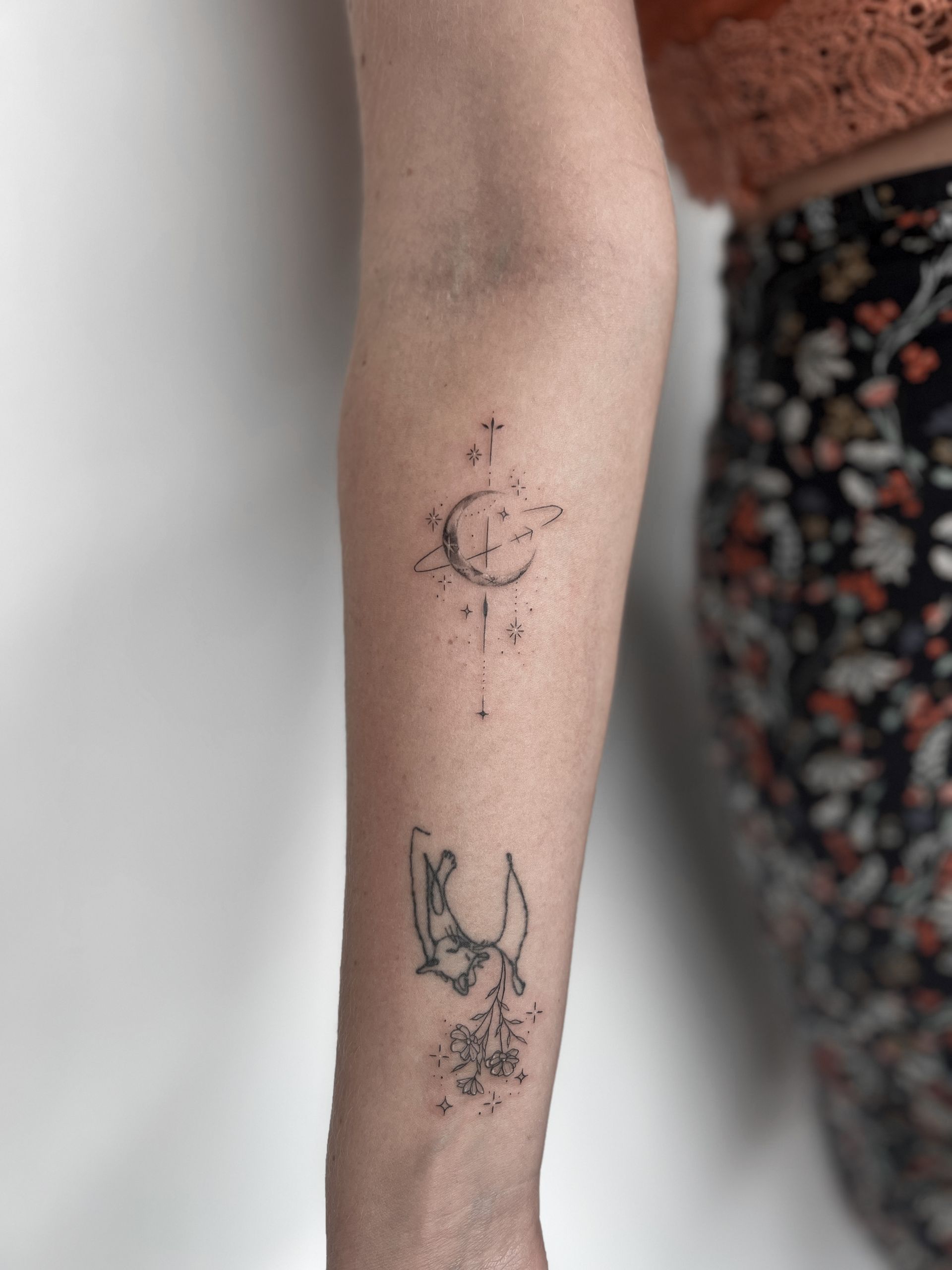 Ich spezialisiere mich auf die Stile Fineline und Microrealismus. Alle Tattoos (ausgenommen Schriftzüge) werden individuell nach Wünschen angefertigt.